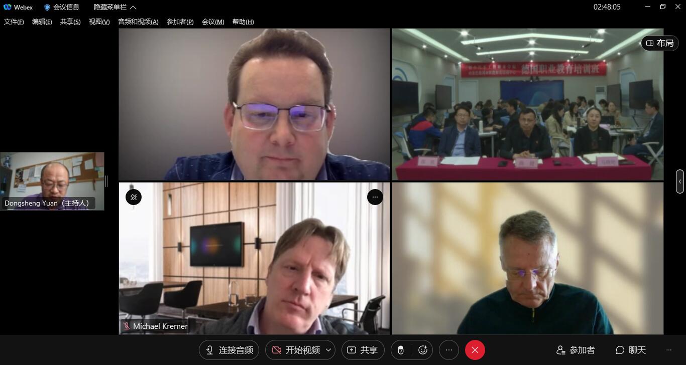 本次培训班由教务处与对外交流合作中心共同举办,参训教师将在4月—8月以线上线下相结合的方式,分三期完成德国双元制职教体系、职业行动能力培养、教学管理及教学方法、数字化课程等内容学习,并在德国专家的指导下完成规定的教学项目设计并进行成果汇报,全面系统学习掌握德国先进职教理念和教学方法。