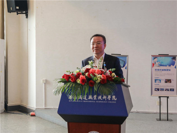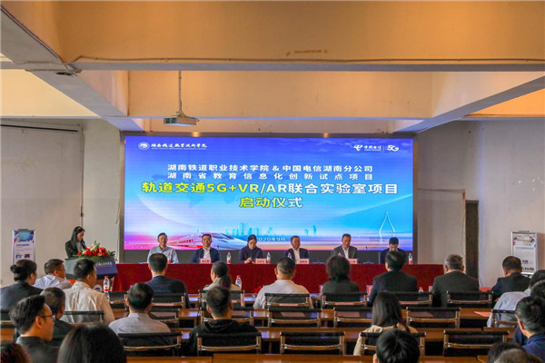 9月28日,湖南首个轨道交通5G+VR/AR实训云平台在湖南铁道职业技术学院落地应用,项目启动仪式在学校学术报告厅举行。湖南省教育厅一级巡视员应若平、株洲市副市长杨胜跃、中国电信湖南省公司副总经理刘少阳、湖南铁道职业技术学院校长方小斌、中国电信株洲分公司总经理周旭出席仪式现场;中国电信湖南省公司政企客户部总经理张富强、中国电信湖南省公司网络发展部副主任/5G办主任殷铁军、株洲电信副总经理易葱、刘明,学校领导班子、中层以上领导、系主任、专业主任、教研室主任等骨干教师参加启动仪式,会议由副校长张莹主持。
