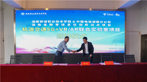 刘少阳表示,此次与学校共同打造的5G联合实验室入选“湖南教育信息化试点项目”是双方共同努力的结果。湖南铁道职业技术学院作为全国轨道交通行业高职龙头院校,教育部“双高计划”重点院校,率先在国内建成轨道交通5G+VR/AR实训平台,开展智能培训及服务,走在了全国同行业前列,树立了校企合作共赢新标杆。接下来,校企将联合共建5G+VR/AR联合实验室、开展5G等先进学科人才联合培养计划。在与湖南铁道职业技术学院“5G联合实验室”共建共治过程中,继续共享新技术、新模式、新成果,引领5G时代教育信息化新浪潮。
