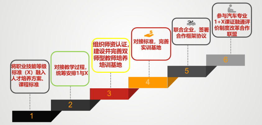 作为首批培训评价组织北京中车行高新技术有限公司认定的汽车专业领域校企合作职业教育培训考核办公室,不断加强与培训评价组织的密切合作,严格按照职业技能等级标准和专业教学标准要求,优化课程设置和教学内容,统筹教学组织与实施,深化教学方式方法改革,改善实训条件,盘活教学资源,创新1+X职业技能等级证书实施路径。