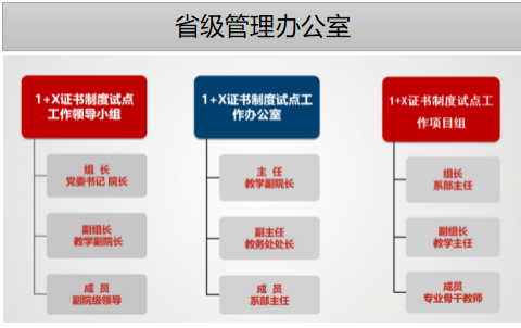 图1 学院被授予省级管理办公室 图2 四层次1+X试点工作组织架构