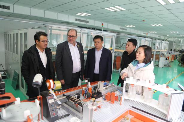 图3 中德新能源汽车培训与认证中心考察 图4 中德新能源汽车培训与认证中心落成
