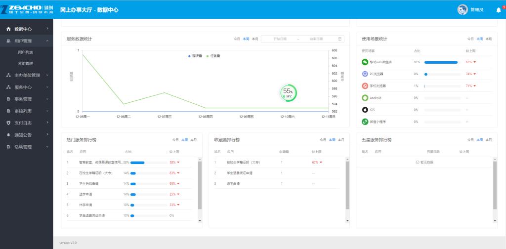 深化网上办事大厅建设,实现行政服务、组织人事、财务管理、学生工作、教学工作等全程网上受理、网上办理和网上反馈,推动管理服务“减流程、减证明、减时间”,让数据多跑路、师生少跑腿。网上办事大厅自上线以来,共建成流程80余个,涉及20余个部门。截至2022年5月,服务次数最多的流程是校外来访人员事务,共办理700次,网上办事大厅总计服务9000人次,流程流转办理总次数共计36744次。