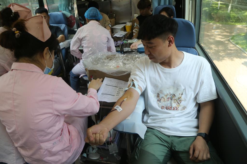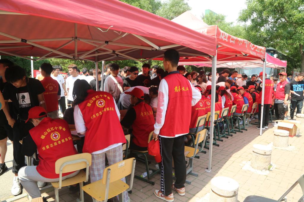 上午9时,烟台市中心血站的采血车刚刚驶进校园,车辆周围就汇集了一群等候献血的师生,队伍中不乏有白发苍苍的老教师,更多的是年轻的教职工和青春飞扬的大学生,其中党员干部更是率先垂范,踊跃参与,无论是谁,个个都是献血的“标兵”,是献血救人的爱心使者。师生们在志愿者的引导下有序地进行个人信息登记、测量血压、抽取血样等各项流程。学院信控系学生刘奕表示:“今天是第一次献血,希望用热血纪念自己的青春,为社会贡献一份自己力所能及的力量,也希望为更多患者带去希望,重获新生。”一袋血,一片心,一份爱,献血者在用实际行动汇聚爱心,为生命加油,用温暖守护生命,用奉献传递大爱。上午10时左右,学院副院长付双美、工会主席孙乃祝、学生处副处长王延强来到献血现场,代表学院对参加义务献血的师生表示慰问,仔细询问师生身体状况,叮嘱大家好好休息。