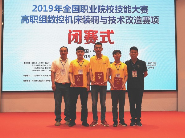 6月15日,2019年全国职业院校技能大赛高职组“数控机床装调与技术改造”赛项在广东省中山市落下帷幕,来自全国的52个代表队参加了此赛项。经过激烈角逐,我院董刚、于洋两位老师指导的李亚龙、田硕、路瑞来三名同学夺得该项目团体二等奖。