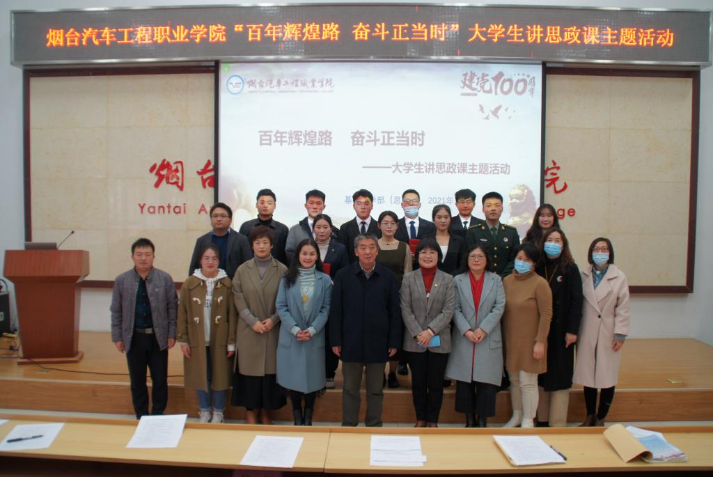为深入贯彻落实十九届六中全会精神,发挥大学生讲思政课的积极性、主动性、创造性,依据山东省教育厅《关于组织参加习近平新时代中国特色社会主义思想大学习领航计划系列主题活动的通知》要求,思政部于11月23日下午在第五会议室组织开展了“百年辉煌路,奋斗正当时”的大学生讲思政课主题活动。学院党委副书记、副院长于波,思政部主任赵桂平,基础教学部副主任林瑛,教学科科长孙红敏以及全体思政教师参加了本次活动。