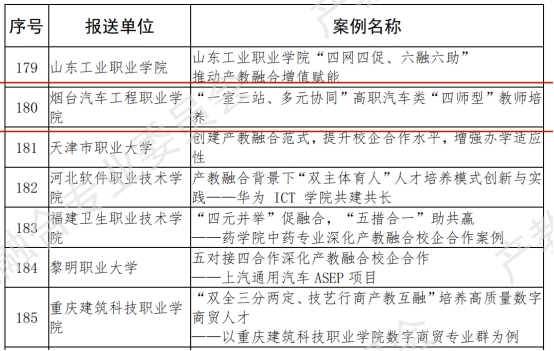 近日,中国教育发展战略学会产教融合专业委员会公布了教育部产教融合校企合作典型案例名单,由烟台汽车工程职业学院提交的《“一室三站、多元协同”高职汽车类四师型教师培养》案例成功入选。2021年7月,教育部发布了关于征集产教融合校企合作案例的启事,面向社会公开征集产教融合、校企合作案例。中国教育发展战略学会产教融合专业委员会受教育部职业教育与成人教育司委托,组织了案例的申报及遴选工作,本次全国范围内共遴选出了485个典型案例。