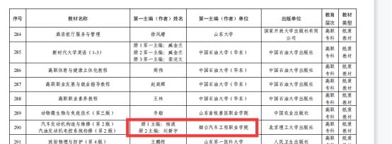 3月15日,山东省教育厅公布了第一批“十四五”职业教育省级规划教材目录,我院教师编写的《工业机器人现场编程》、《汽车单片机应用技术》、《汽车发动机拆装实训》第三版、《机械设计基础》第二版、《汽车发动机构造与维修》第二版和《汽油发动机电控系统检修》第二版,五套共六本教材成功入选。