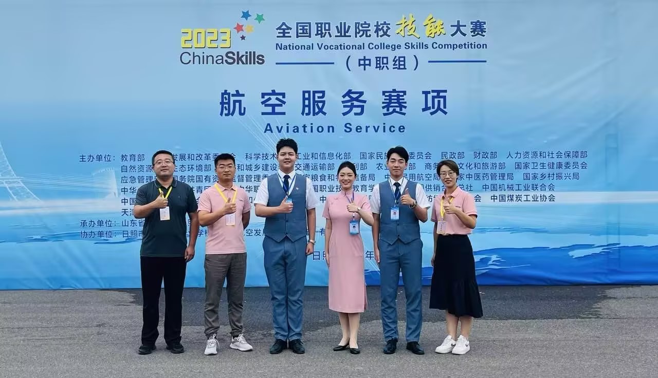 2023年全国职业院校技能大赛(中职组)“航空服务”赛项于9月18-21日在山东日照市科技中等专业学校举办,来自全国各省、直辖市、自治区的53支代表队的159名选手展开激烈角逐,交通工程系杨瑞霖、王惜诺、于文豪三位同学在比赛中发挥稳定,脱颖而出,勇夺国赛一等奖。