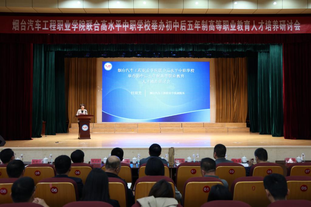 郭峰介绍了烟台汽车工程职业学院专业建设情况和人才培养模式,希望与各学校加强在教育教学、专业建设、师资培养、资源共享等方面的交流合作,共同推动初中后五年制高等职业教育向纵深发展。杨晓斌表示,本次研讨会的举办既是烟台汽车工程职业学院积极践行党和国家关于职业教育高质量发展方针政策的重要举措,也是系统培养高素质技术技能人才的必然选择,希望各学校加强合作、深入探讨,创造性开展工作,建设“试验田”,打造“样板间”,为构筑现代职业教育体系注入新动能,展示新成果,为发展新质生产力贡献职教力量。