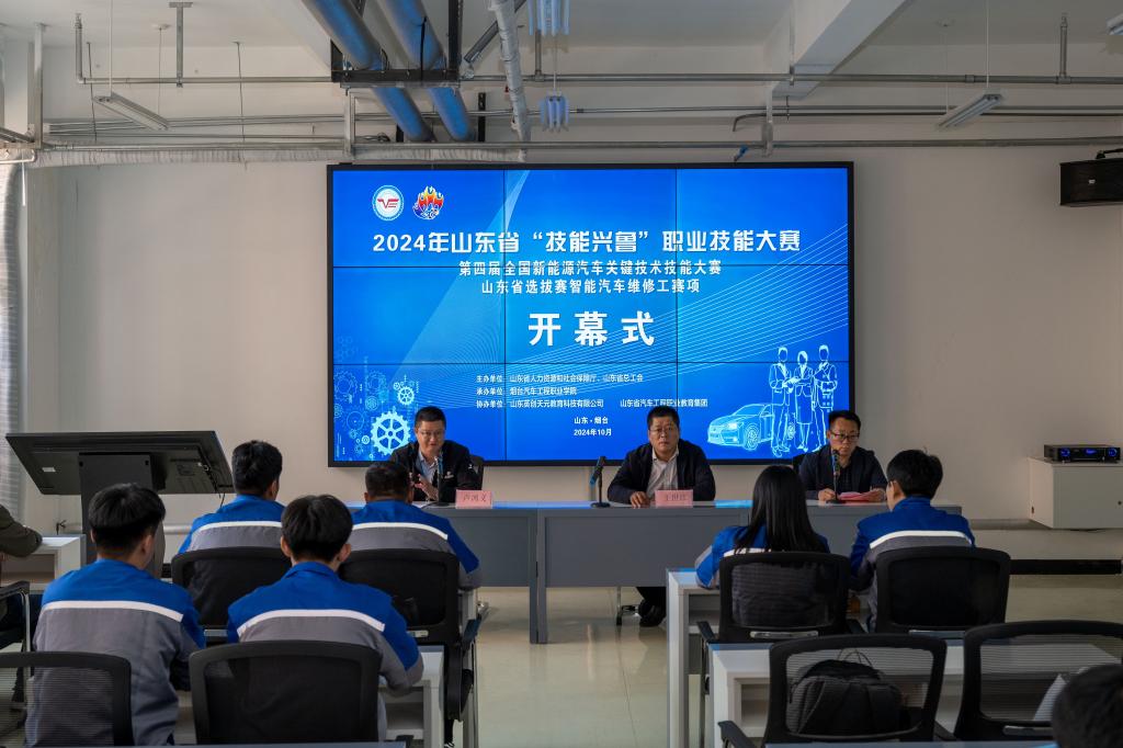 10月17日,2024年山东省“技能兴鲁”职业技能大赛第四届全国新能源汽车关键技术技能大赛山东省选拔赛智能汽车维修工赛项在烟台汽车工程职业学院开赛,来自全省的19支代表队参加比赛。烟台汽车工程职业学院副院长王世江、赛项裁判长卢鸿义、智能汽车工程系主任邹德伟出席,各参赛队领队、指导教师、参赛选手参加开赛式。