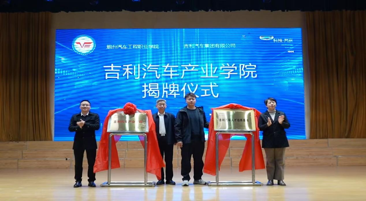 12月24日上午,烟台汽车工程职业学院吉利汽车产业学院正式揭牌成立。吉利汽车产业学院由烟台汽车工程职业学院与吉利汽车集团有限公司联合共建,双方将深化校企合作、产教融合,全方位、全过程、深层次培养高水平汽车技能人才。吉利汽车集团人才经营总监祝万云、吉利汽车集团高级讲师孙大维、吉利汽车集团人才经营部校企合作区域经理卢明远、学院党委书记秦桂建、智能汽车工程系主任邹德伟、车辆运用工程系主任王永浩出席揭牌仪式,学院副院长付双美主持仪式。