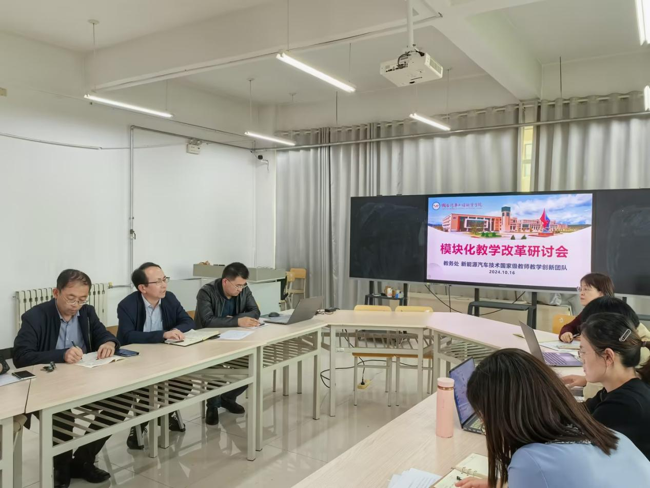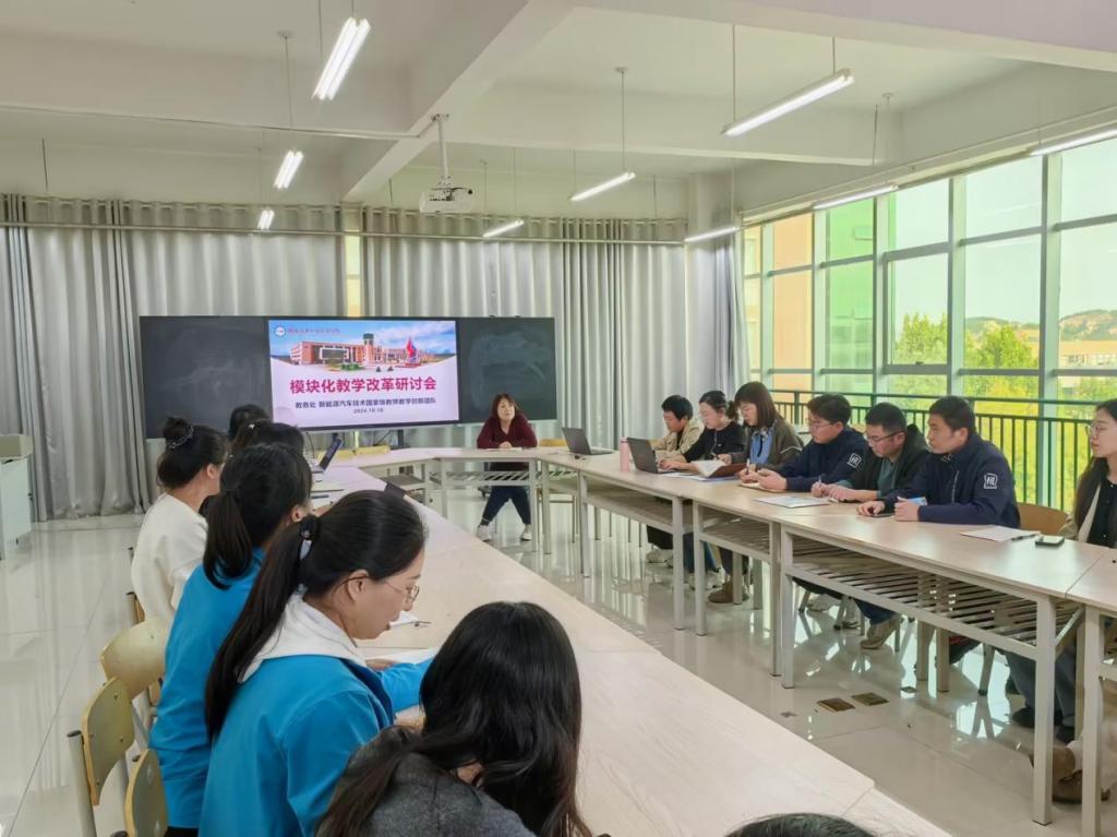 为推进学院模块化教学改革走向纵深,10月16日下午,教务处联合新能源汽车技术国家教师教学创新团队召开模块化教学研讨会。研讨会由教务处副处长、国家创新团队成员陈晓妮主持,国家级和省级教师教学创新团队成员、各教学部门教学负责人及参与模块化改革的专业负责人、骨干老师参加研讨。研讨会在教师发展中心举行。
