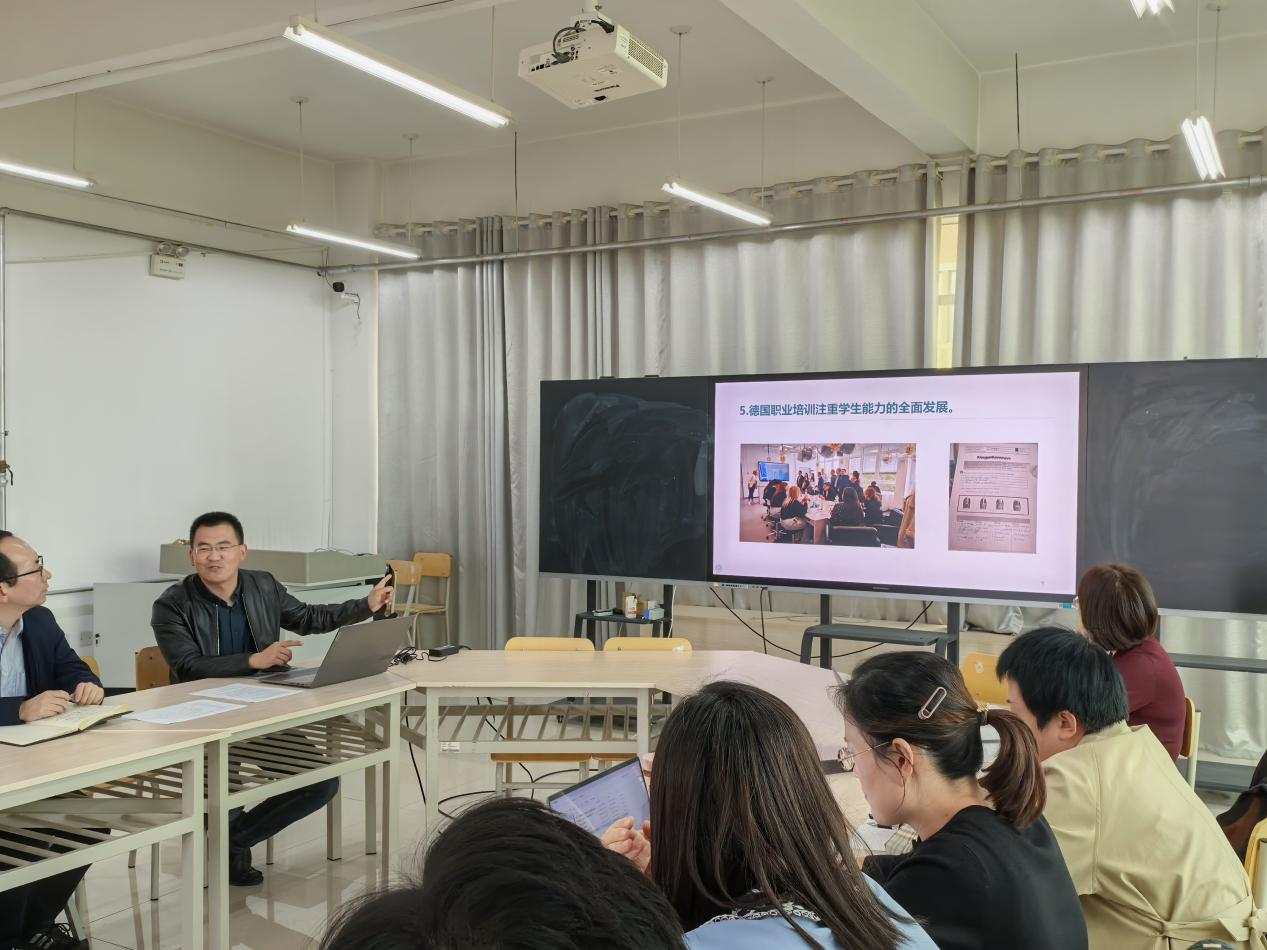 第一期分享会由车辆运用工程系张劲松老师主讲。他通过展示丰富的图片、讲述生动的案例,并结合自己的观察与思考,详细汇报了在德国研修期间所获得的宝贵经验和深刻体会。重点介绍了德国教育体系和双元制职业教育培训的主要特点,分享了在德国跨企业培训中心、美因茨电机维修公司等参访过程中的体会。结合此次学习研修收获和个人教学经历,他认为职业教育应该更加突出学生主体地位,注重培养学生专业、方法、社会及个人综合能力。分享汇报结束后,与会人员就德国职业教育特点展开了热烈讨论。表示在今后的教学中,要积极吸取国内外职业教育的优秀成果,继续推进教学改革,更加注重学生理论与实践相结合,激发学生的学习热情,培养高素质技术技能人才。